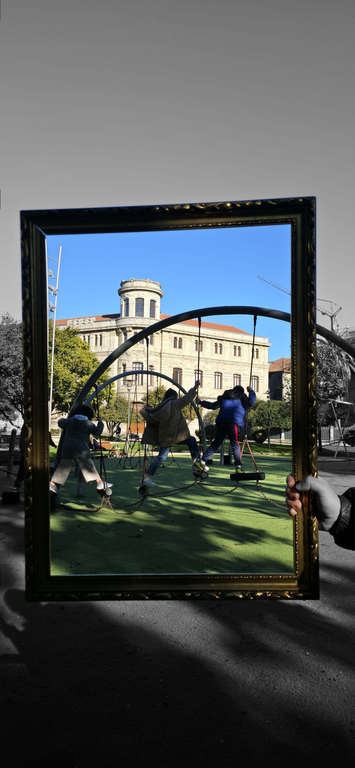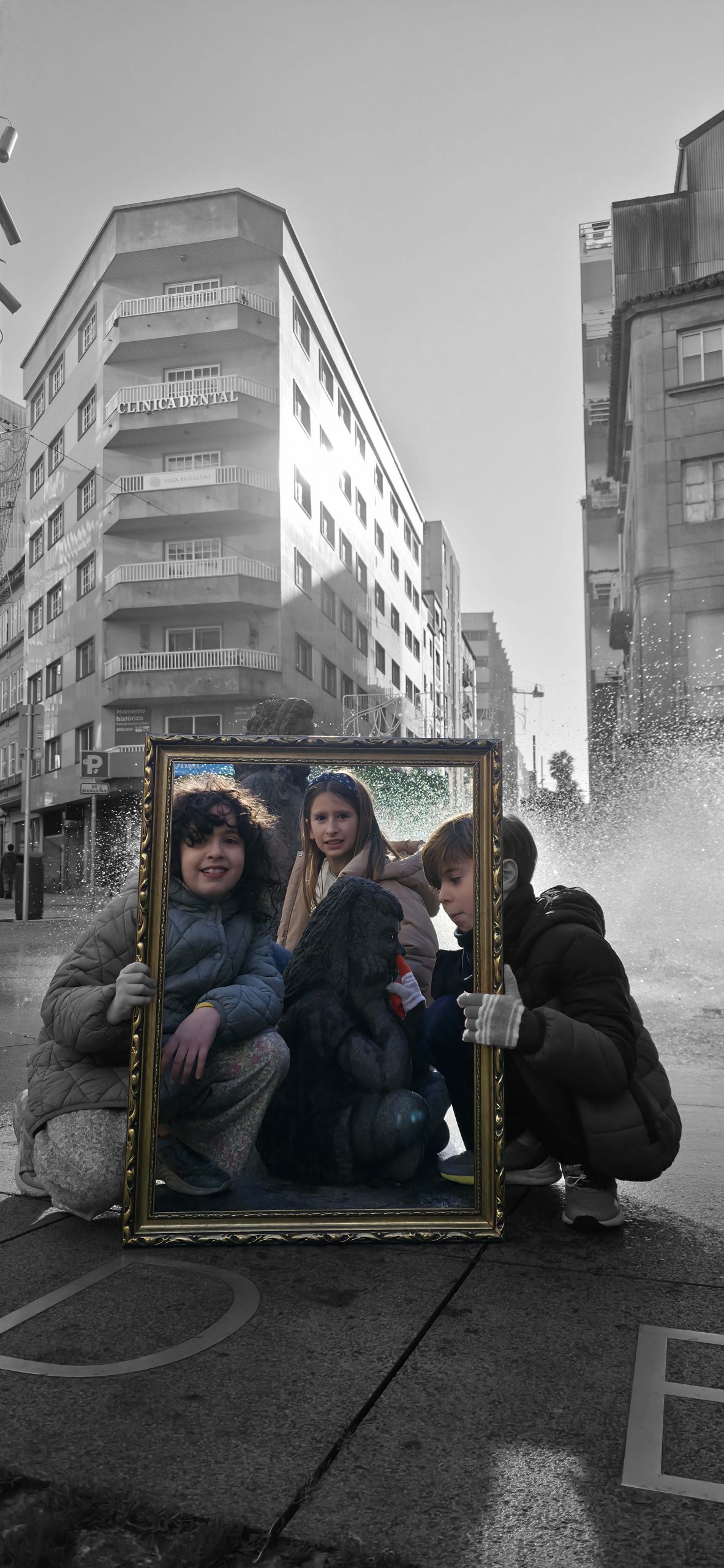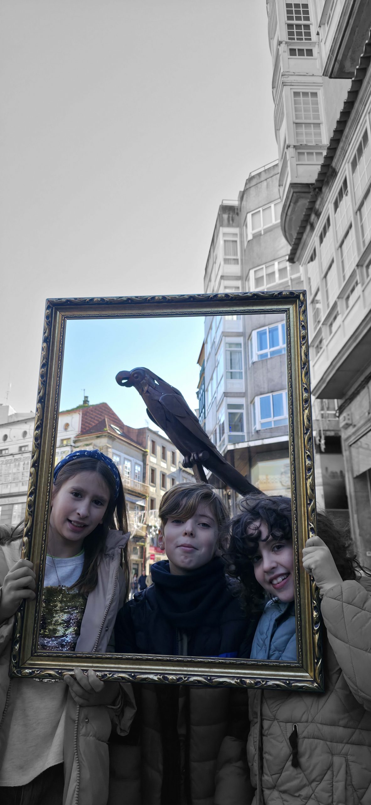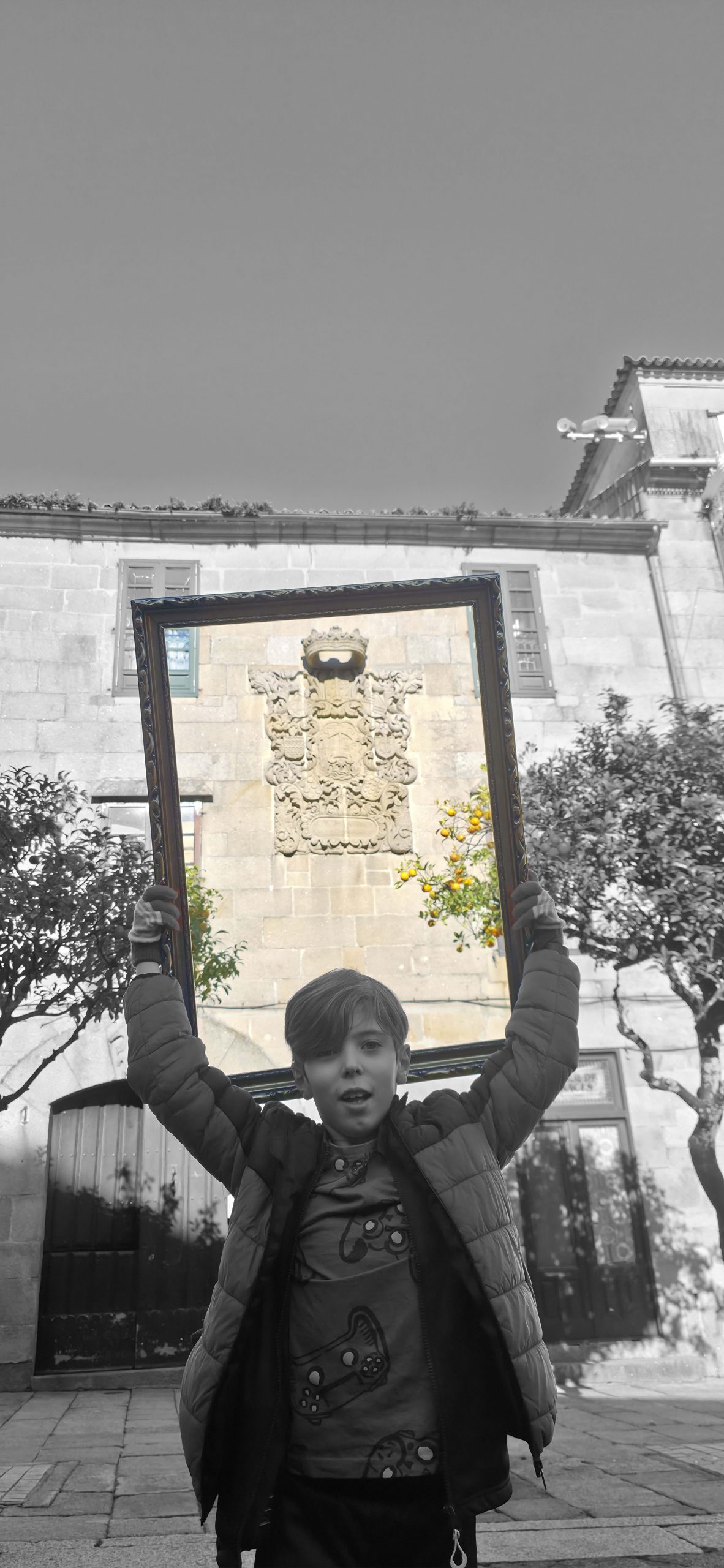To understand how the inhabitants, both current and future, perceive their village, we will use the following strategy: we set off ‘adrift’ with a large golden frame, so that during our wandering, we frame those urban elements that are important to them (an experience based on the work of O’Grady). Who have been the protagonists of this ‘A Vila do Mañá’ experience? On this occasion, during their wandering, they have reDISCOVERED places in their village, perhaps forgotten ones.