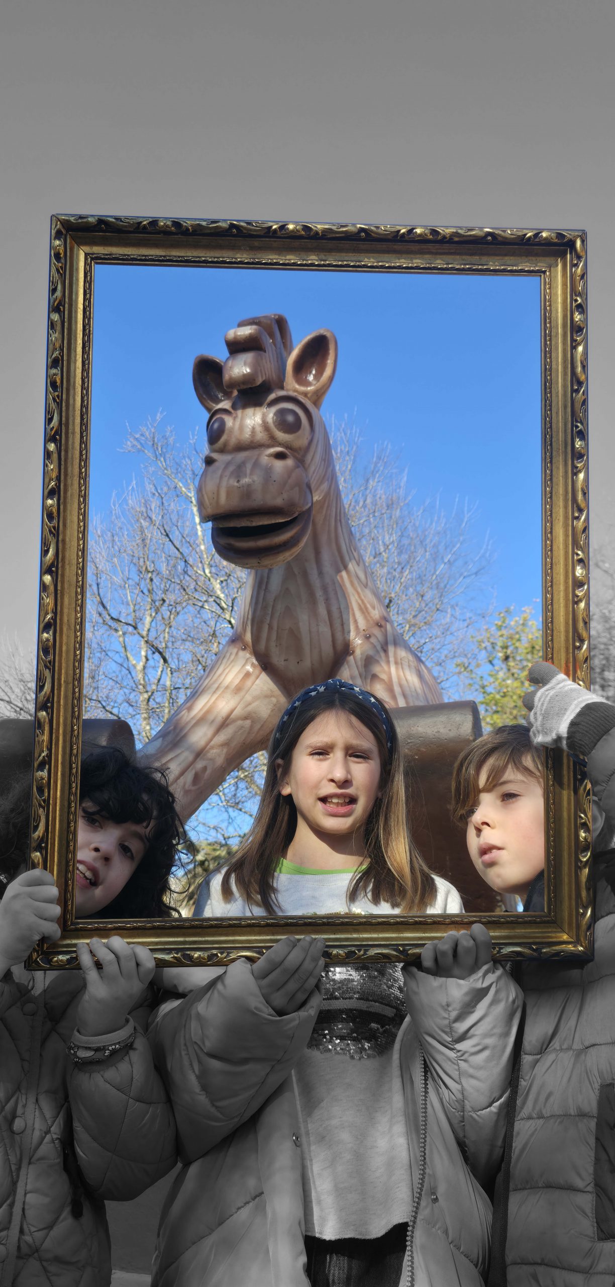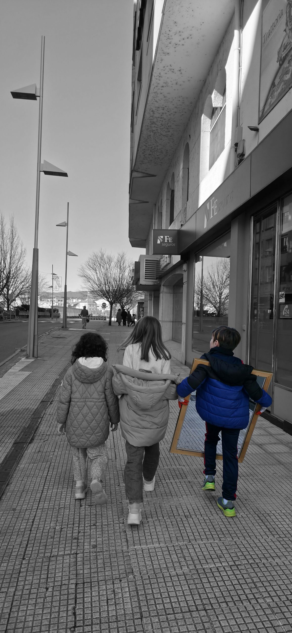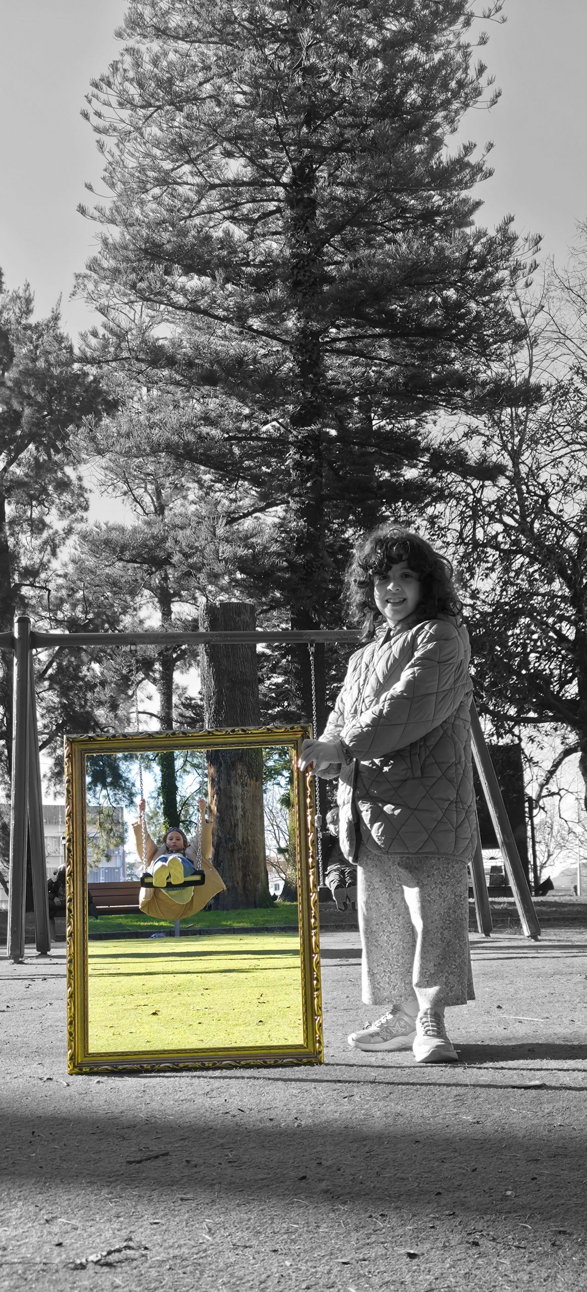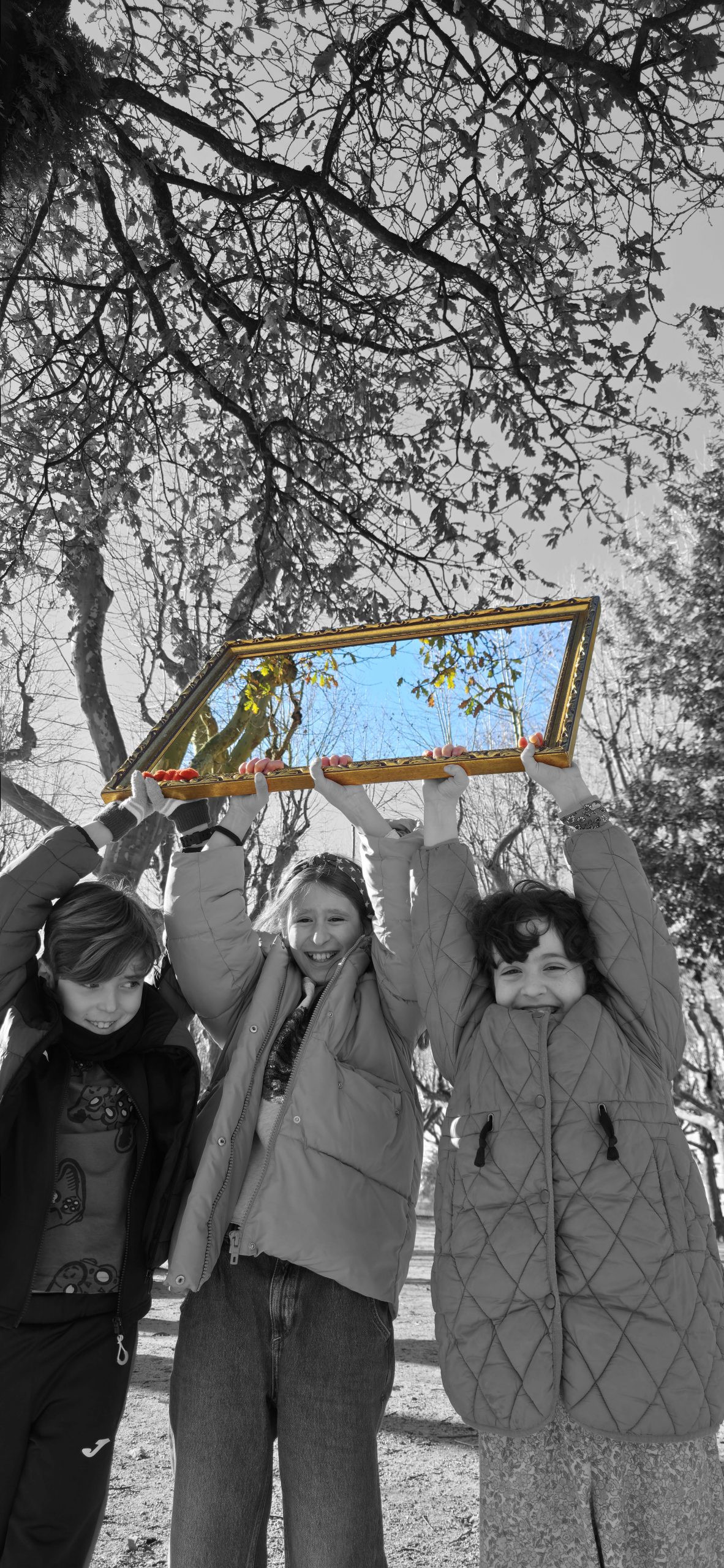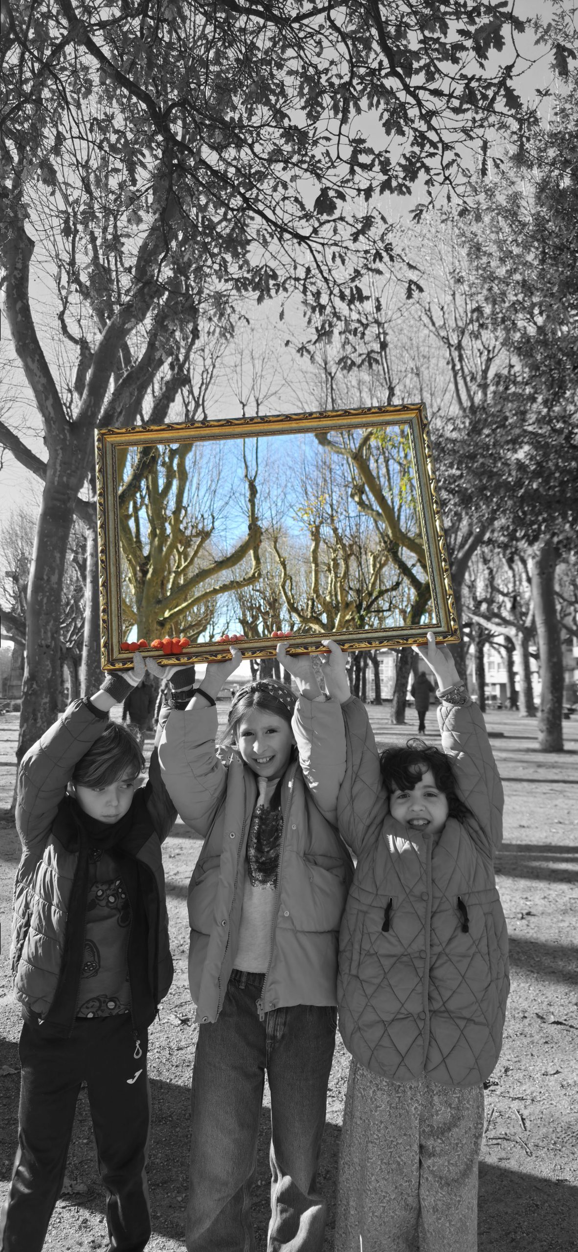 To understand how the inhabitants, both current and future, perceive their village, we will use the following strategy: we set off ‘adrift’ with a large golden frame, so that during our wandering, we frame those urban elements that are important to them (an experience based on the work of O’Grady). Who have been the protagonists of this ‘A Vila do Mañá’ experience? On this occasion, during their wandering, they have reDISCOVERED places in their village, perhaps forgotten ones.